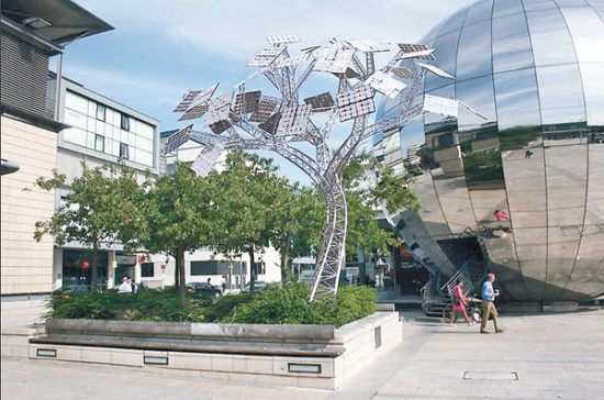 據(jù)外媒日前報道,英國布里斯托市計劃建造一株完全以鋼鐵打造,配備有36塊太陽能充電板的“太陽能樹”。