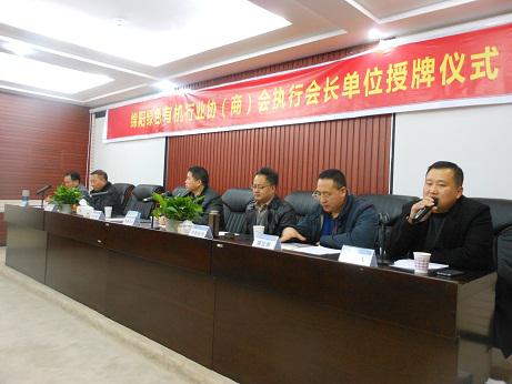 市委農(nóng)辦副主任何春華、市農(nóng)業(yè)局副局長(zhǎng)王均沛為綿陽綠色有機(jī)行業(yè)協(xié)會(huì)(商會(huì))執(zhí)行會(huì)長(zhǎng)單位——科技城科源科技有限公司授牌。市工商聯(lián)秘書長(zhǎng)王華明、綿陽綠色有機(jī)行業(yè)協(xié)會(huì)(商會(huì))發(fā)起人、名譽(yù)會(huì)長(zhǎng)蔣開恩、綿陽綠色有機(jī)行業(yè)協(xié)會(huì)(商會(huì))會(huì)長(zhǎng)、四川鐵騎力士集團(tuán)董事長(zhǎng)雷文勇,科源科技董事長(zhǎng)、綿陽綠色有機(jī)行業(yè)協(xié)會(huì)(商會(huì))執(zhí)行會(huì)長(zhǎng)廖藝徽,綿陽綠色有機(jī)行業(yè)協(xié)會(huì)(商會(huì))會(huì)員企業(yè)代表參加了會(huì)議。
