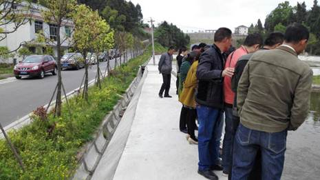圖為考察團正在聚精會神進行實地考察,并熱火朝天簇擁討論。
