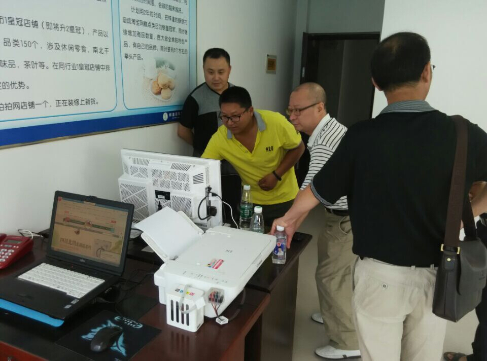 于梓潼縣薪能網(wǎng)絡(luò)科技有限公司辦公房,企業(yè)負(fù)責(zé)人現(xiàn)場向李建忠副局長、何江林副局長演示該企業(yè)電子商務(wù)平臺(tái)。