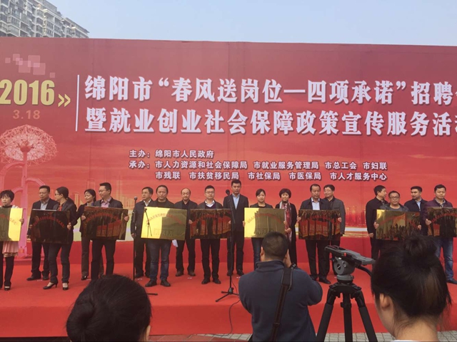 3月18日上午,江油科技孵化園受邀參加由綿陽(yáng)市人民政府主辦,市人社局、扶貧移民局、總工會(huì)、婦聯(lián)、殘聯(lián)、就業(yè)局、社保局、人才服務(wù)中心等單位聯(lián)合承辦的“春風(fēng)送崗位—四項(xiàng)承諾”招聘會(huì)暨就業(yè)創(chuàng)業(yè)社會(huì)保障政策宣傳服務(wù)活動(dòng)在市人民公園文化廣場(chǎng)舉行。