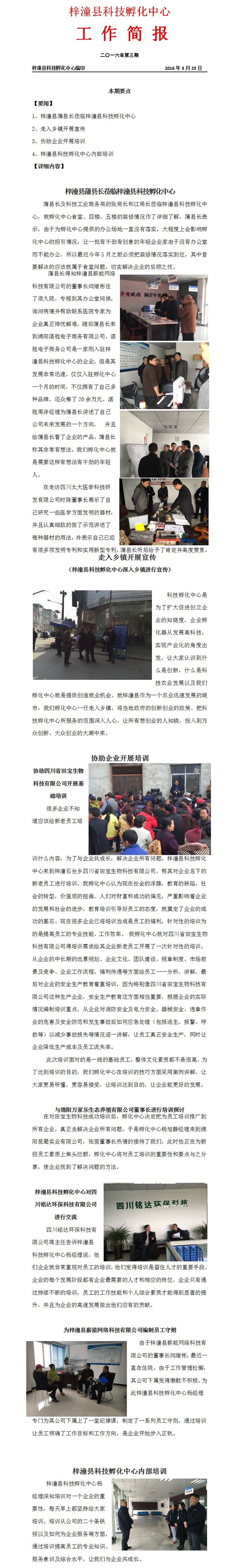 梓潼縣科技孵化中心2016年3月工作簡報(bào)