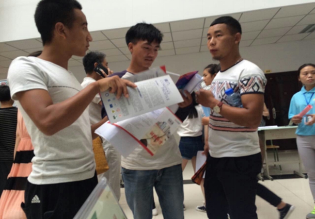 多名機(jī)電技術(shù)應(yīng)用專業(yè)的畢業(yè)生咨詢孵化園入孵企業(yè)提供的焊工、鉗工崗位,與孵化園工作人員交談了解工作地點(diǎn)、待遇及工作性質(zhì)后,投了個(gè)人簡(jiǎn)歷,并填寫應(yīng)聘人員登記表。