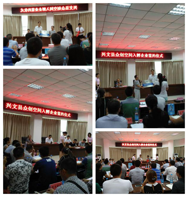 為眾創(chuàng)空間科技付孵化園頒發(fā)了“宜賓市科技眾創(chuàng)空間”牌匾,同時(shí)希望興文眾創(chuàng)空間將引領(lǐng)興文縣新的創(chuàng)新創(chuàng)業(yè)浪潮。廖董事長表示,眾創(chuàng)空間管理團(tuán)隊(duì)將結(jié)合宜賓市及興文當(dāng)?shù)氐陌l(fā)展戰(zhàn)略,優(yōu)化創(chuàng)新創(chuàng)業(yè)環(huán)境,集合創(chuàng)新創(chuàng)業(yè)要素,充分激發(fā)創(chuàng)新創(chuàng)業(yè)潛能,形成“大眾創(chuàng)業(yè)、萬眾創(chuàng)業(yè)”的生動(dòng)局面。參會的領(lǐng)導(dǎo)紛紛表示,全力支持眾創(chuàng)空間的創(chuàng)新創(chuàng)業(yè)活動(dòng),將興文縣的創(chuàng)新創(chuàng)業(yè)活動(dòng)扎扎實(shí)實(shí)做好,做出特色來。