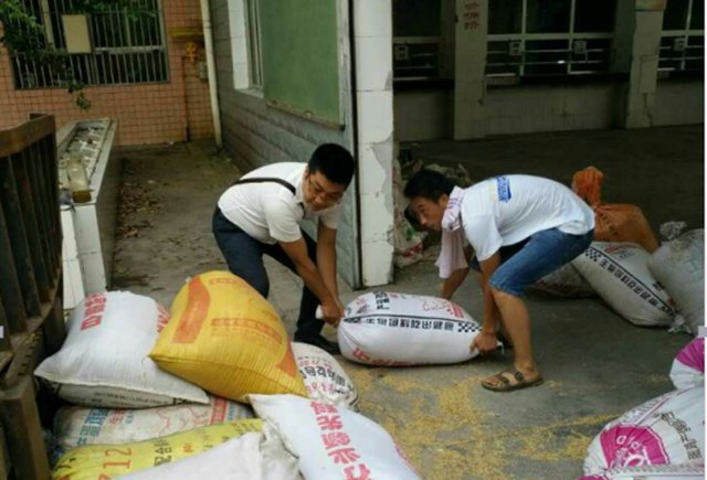(眾創(chuàng)空間工作人員幫助洪總搬谷子)