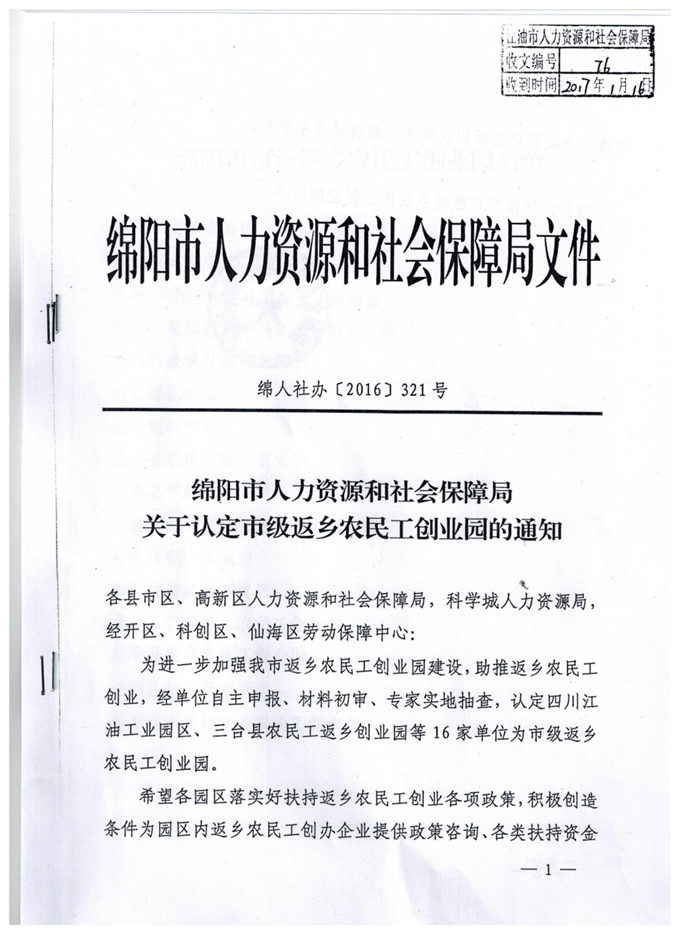 近日,江油市科技孵化園被認(rèn)定為綿陽市市級返鄉(xiāng)農(nóng)民工創(chuàng)業(yè)園。