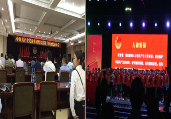 首先,進行規(guī)范的入團儀式,共青團興文縣委李芳同志為新團員代表佩戴團徽、發(fā)放團員證并帶領(lǐng)大家重溫了入團誓言。