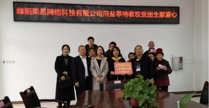 3月22日上午10時,鹽亭創(chuàng)業(yè)孵化中心陳國攜入孵企業(yè)綿陽市榮易網(wǎng)絡(luò)科技有限公司經(jīng)理朱曉一行到縣特殊教育學(xué)校關(guān)愛慰問貧困學(xué)生,并送去愛心慰問款壹萬元。