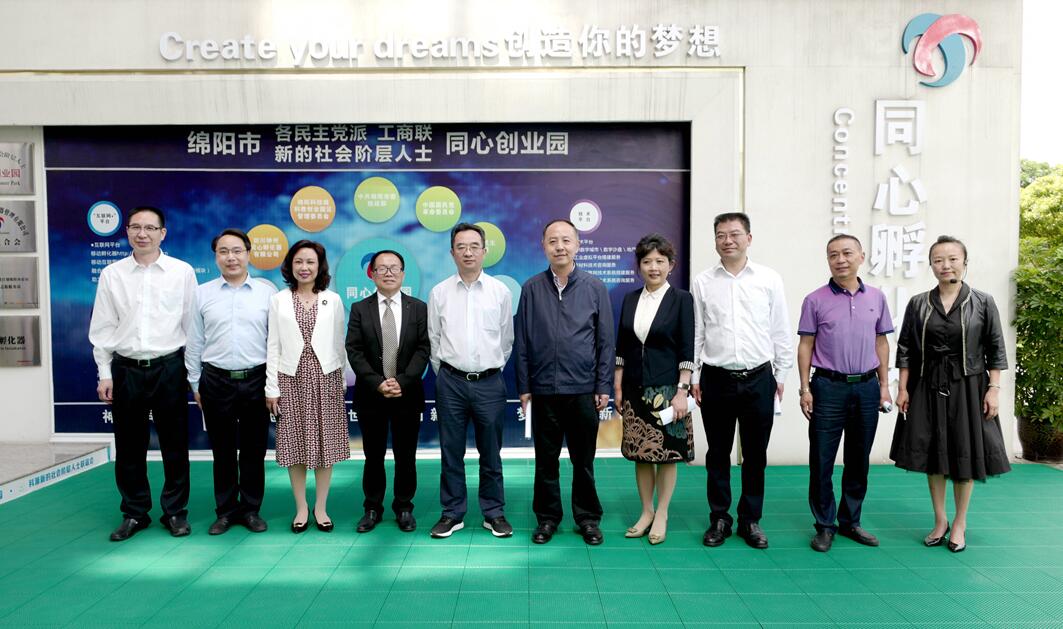 調(diào)研組張局長(zhǎng)同四川省委統(tǒng)戰(zhàn)部魏在田副部長(zhǎng)、新階處劉杰處長(zhǎng),中共綿陽(yáng)市委常委、統(tǒng)戰(zhàn)部長(zhǎng)李亞蓮,科創(chuàng)區(qū)黨工委書(shū)記周鈺、管委會(huì)主任李哲,市委統(tǒng)戰(zhàn)部副部長(zhǎng)袁蓉、馮斌等領(lǐng)導(dǎo)在科源同心創(chuàng)新創(chuàng)業(yè)示范基地合影留念。