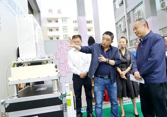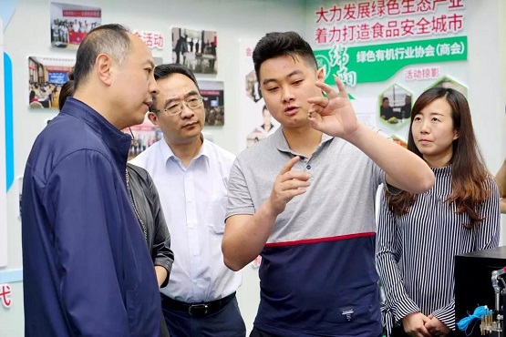 同心創(chuàng)新創(chuàng)業(yè)示范基地入孵企業(yè)比萊科技向張明局長(zhǎng)介紹成果產(chǎn)品